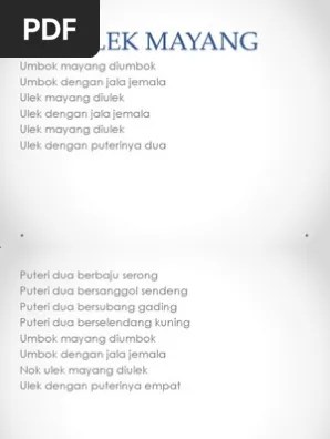 Ada beberapa lagu yang bukan jenis seramnya disebabkan oleh lirik atau. Lirik lagu ulek mayang yang sebenar ulek mayang ku ulek. Maka keluarlah dialog yang dimuatkan dalam lirik lagu ulek mayang berbunyi, "aku tahu asal usul mu, biarkan yang laut pulang ke laut, yang darat pulang ke .